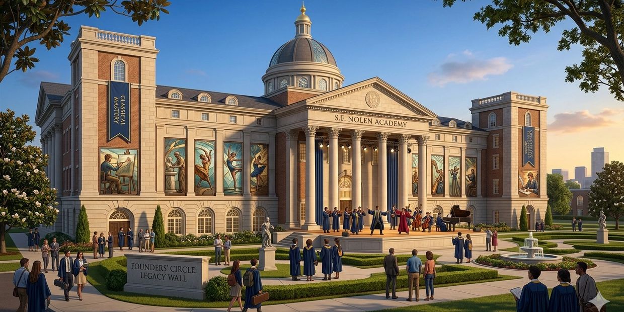 While this rendering represents our long-term institutional legacy, our work begins in August 2026. Your investment today provides the essential "Runway" for our first cohort of 26 scholars—funding everything from specialized instructional leadership to the classical instruments and art consoles that will define their experience.